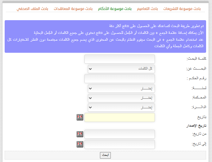 6-بتاريخ : للبحث عن حكم صدر بتاريخ محدد.